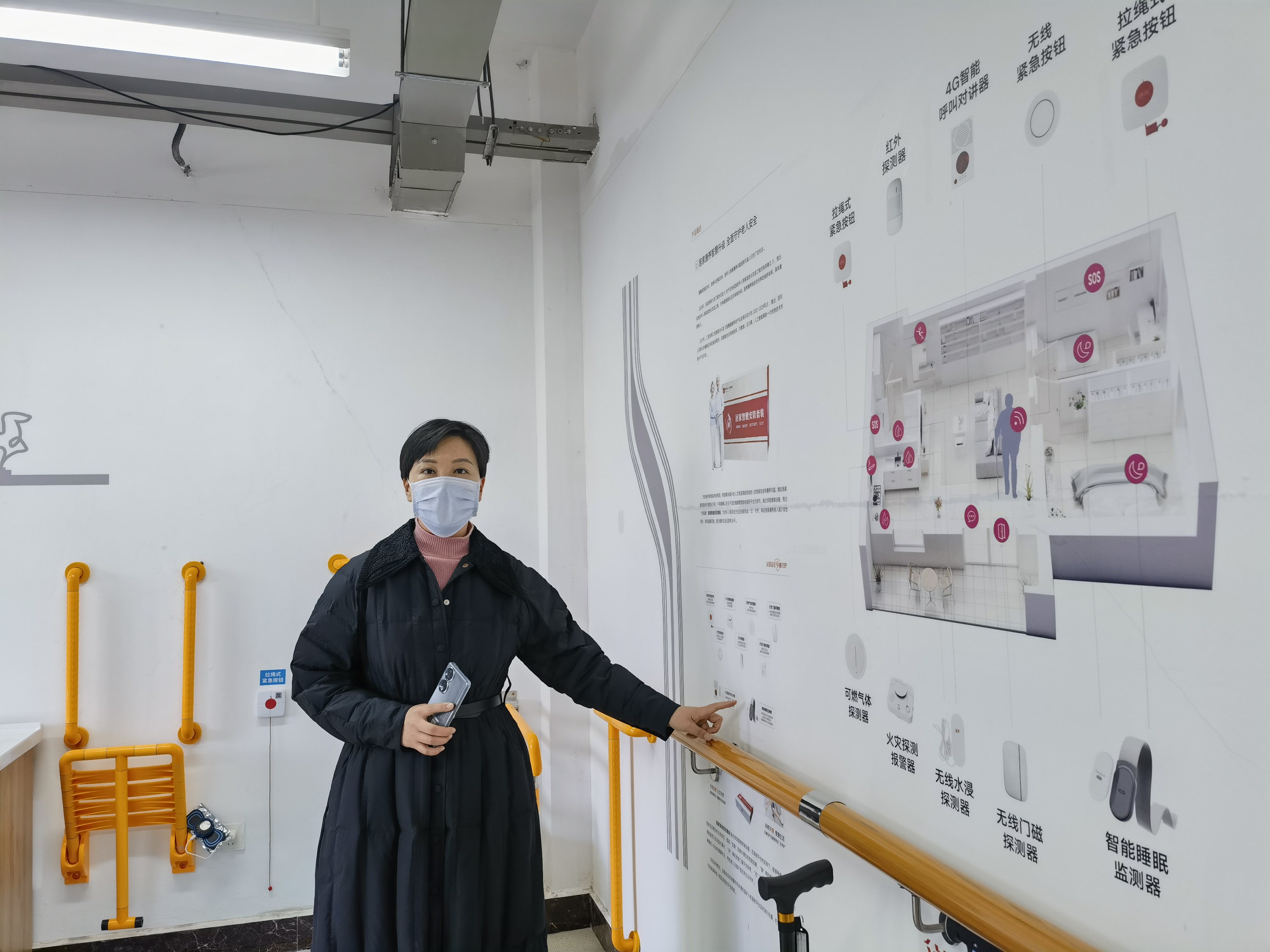 走進(jìn)建業(yè)社區(qū)養(yǎng)老服務(wù)中心居家養(yǎng)老體驗(yàn)室,衛(wèi)生間的“浴改淋”“蹲改坐”,一字形扶手、折疊浴椅、防滑墊,廚房用的煙霧、燃?xì)夂退O(jiān)測(cè)報(bào)警器;房間里的防撞條、感應(yīng)夜燈等居家適老化改造器械一應(yīng)俱全。此外,還有可以安裝在老人床邊的智能監(jiān)測(cè)設(shè)備和報(bào)警器,遇到問(wèn)題只要按下緊急呼叫按鈕,不僅能聯(lián)系到子女,還能得到社區(qū)“智慧養(yǎng)老安全預(yù)警平臺(tái)”的迅速回應(yīng),24小時(shí)為老人健康安全保駕護(hù)航。