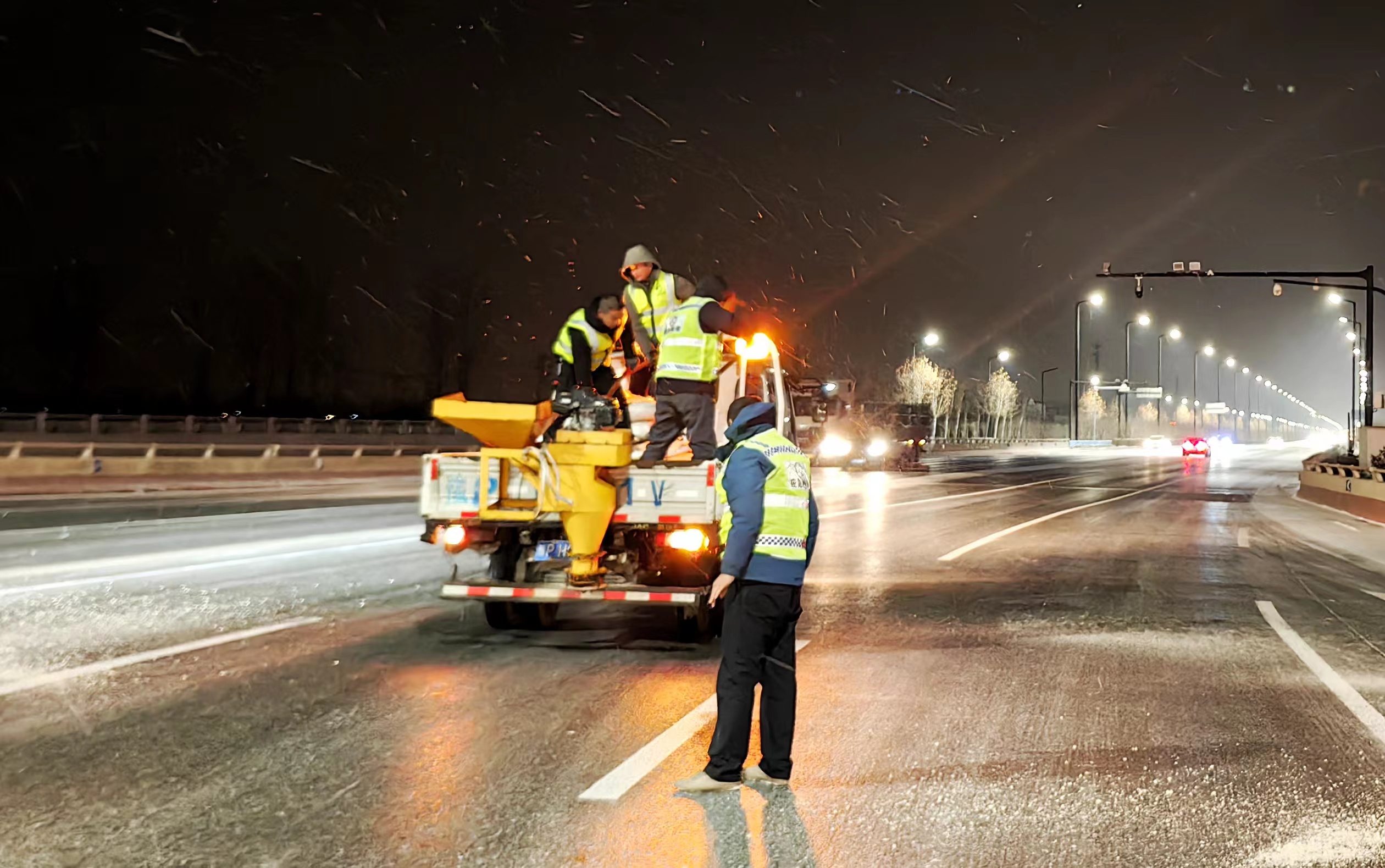 這兩天我市迎來(lái)大范圍雨雪天氣,給市民出行帶來(lái)嚴(yán)峻考驗(yàn)。2月2日,記者從市公路事業(yè)發(fā)展中心獲悉,他們組織人員頂風(fēng)冒雪,徹夜奮戰(zhàn),開(kāi)展除雪融冰工作,保障全市人民安全出行。