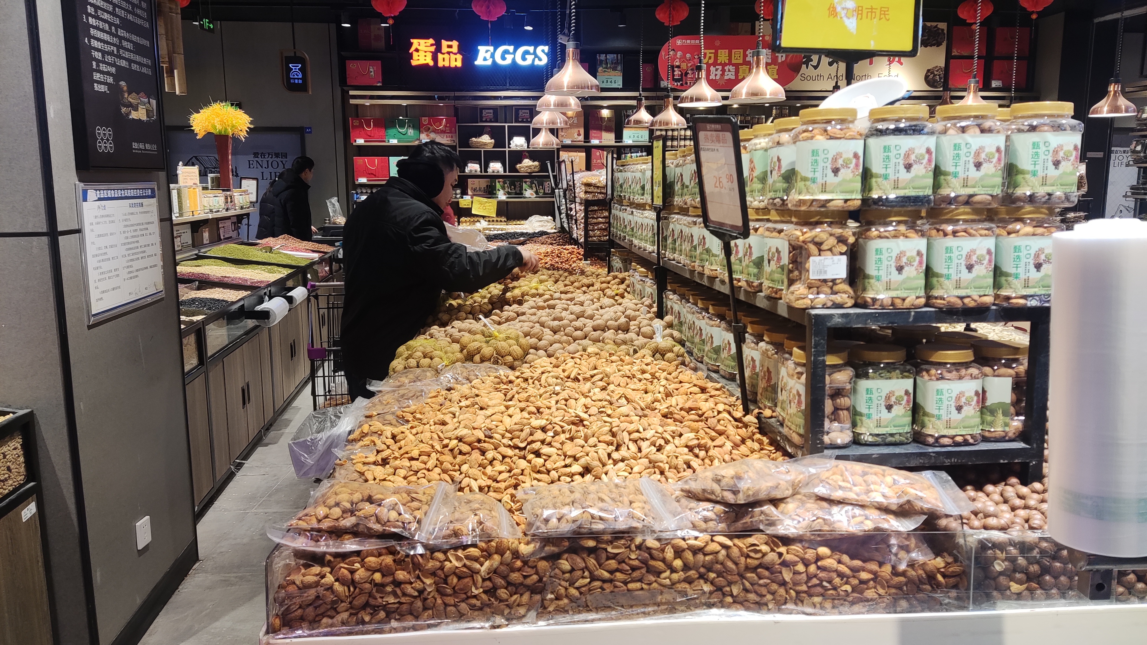 核桃、巴旦木、夏威夷果、碧根果……市民陳女士拎著一大包商品滿載而歸。“吃堅(jiān)果健康又養(yǎng)生,家里人都喜歡吃,過(guò)年期間一家人邊聊天邊吃堅(jiān)果,滿滿年味?!标惻空f(shuō),組合裝小袋堅(jiān)果比較劃算,里面有剝好的杏仁、核桃、腰果等,價(jià)格不貴,方便實(shí)惠。