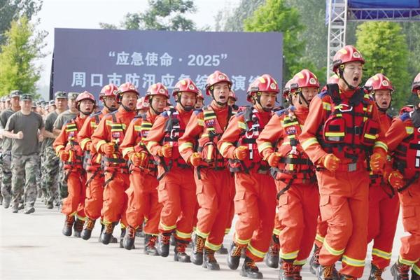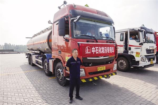 中石化周口石油分公司組建防汛應急隊伍,調配防汛專用車及專業(yè)裝備參與演練。