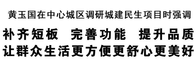 調(diào)研中,黃玉國強調(diào),城建民生項目是推動城市高質(zhì)量發(fā)展、創(chuàng)造高品質(zhì)生活的重要抓手。要深刻把握“五個轉(zhuǎn)變、五個更加注重”重要原則,順應城市發(fā)展規(guī)律,尊重人民群眾意愿,堅持系統(tǒng)謀劃,聚焦民生關(guān)切,著力補齊城市基礎設施、公共服務等領域短板弱項;堅持創(chuàng)新思路,積極主動作為,著力破解制約項目建設的堵點難點;堅持量力而行,分清輕重緩急,務實高效推進項目建設,確保干一件成一件,不斷增強人民群眾獲得感、幸福感和安全感。