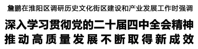 本報訊 (記者 李鳳霞 何晴) 10月29日,市長詹鵬到淮陽區(qū)調(diào)研歷史文化街區(qū)建設(shè)和產(chǎn)業(yè)發(fā)展工作,強調(diào)要深入學(xué)習(xí)貫徹黨的二十屆四中全會精神,扎實推進(jìn)產(chǎn)業(yè)高質(zhì)量發(fā)展,鞏固壯大實體經(jīng)濟(jì)根基,奮力譜寫中原大地推進(jìn)中國式現(xiàn)代化周口新篇章。張建黨、王文峰參加調(diào)研。