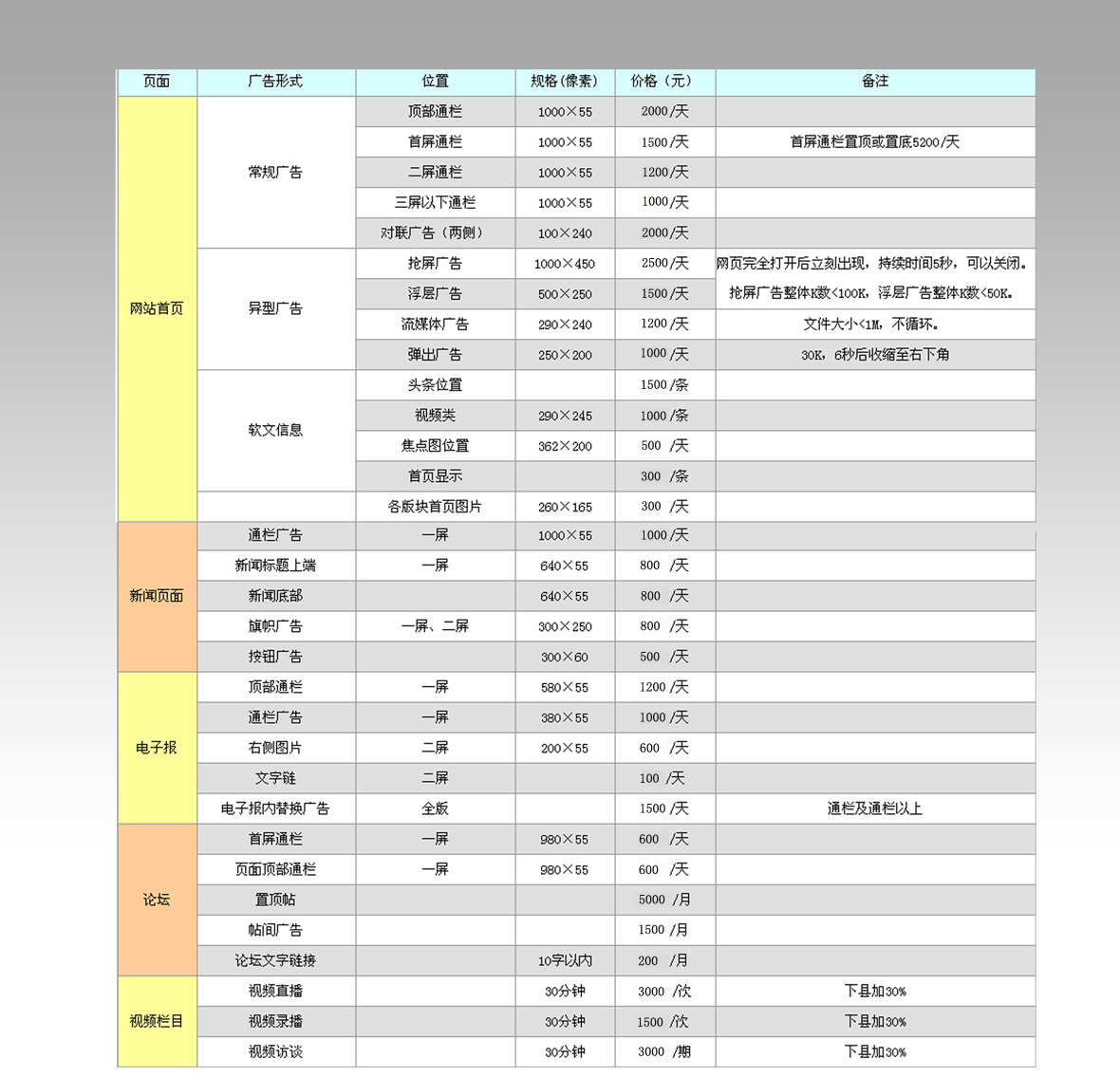 廣告形式及價(jià)格