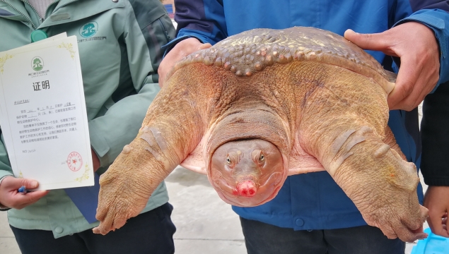近日,鄲城縣自然資源局接到縣城市管理局公園管理辦公室工作人員救助電話,稱在人民公園岸邊又發(fā)現(xiàn)一只“大老鱉”。接到救助電話后,該局領(lǐng)導(dǎo)立即指派野生動植物保護(hù)和自然保護(hù)地管理股工作人員前往現(xiàn)場救助?!?a href="http://www.fanwenbi.com/content/2021-03/23/content_925978.html" target="_blank" >[詳細(xì)]