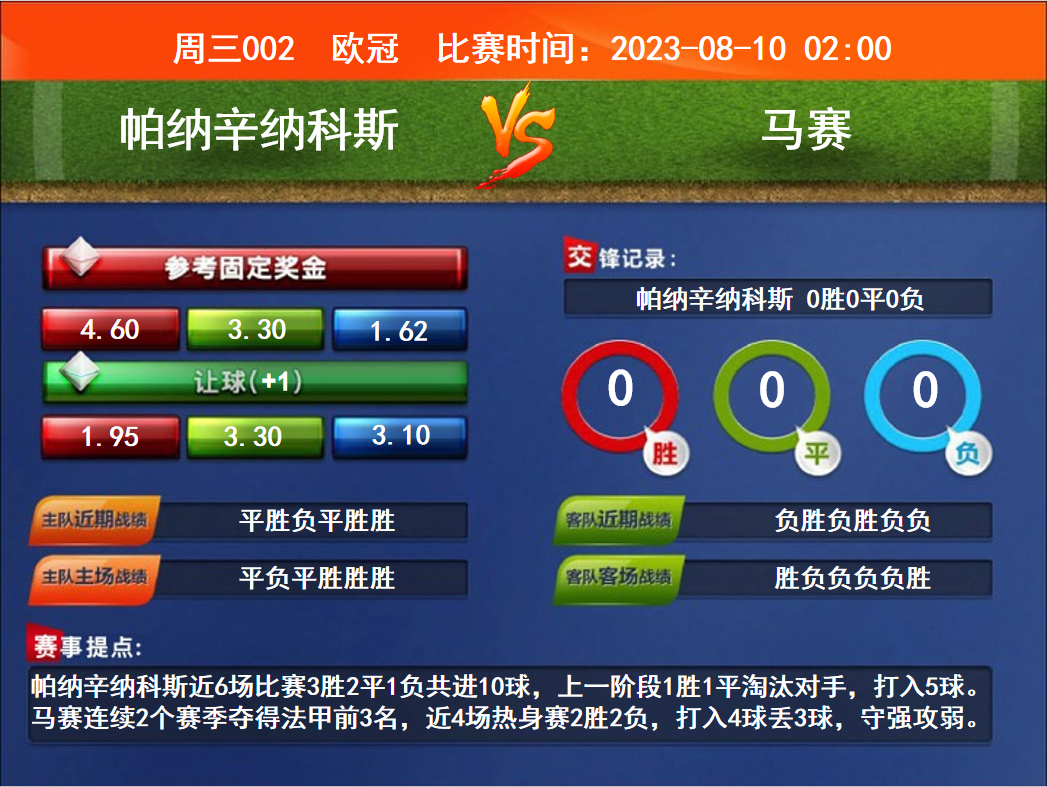 周三競彩足球強檔:馬賽戰(zhàn)績波動,帕爾梅拉斯占主動