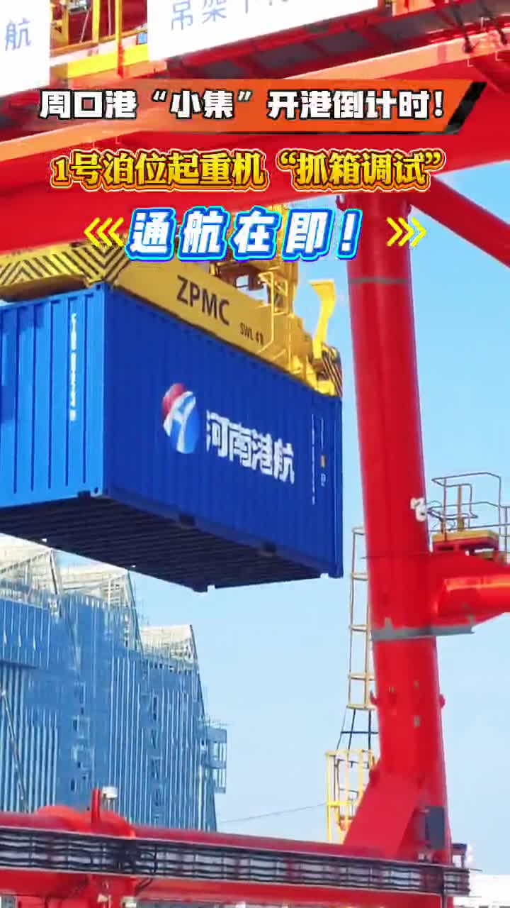 周口港“小集”開港倒計時!1號泊位起重機“抓箱調(diào)試”,通航在即!