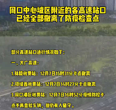中心城區(qū)高速站口防疫卡點撤銷
