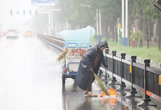 9月22日清晨,連綿的秋雨持續(xù)不斷,在周口市淮陽(yáng)區(qū)弦歌西路,一位環(huán)衛(wèi)工人冒雨清理道路上的垃圾,保障市民安全順暢通行。