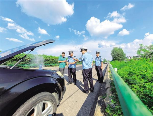 8月22日,周口市公安局高速公路交警支隊三名民警辦案返程途中,在寧洛高速沈丘縣境內(nèi)遇一車輛拋錨。民警迅速將車上乘客轉(zhuǎn)移至護欄外安全區(qū)域,妥善處置險情后,通知救援人員趕到。
