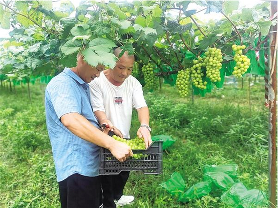 近日,鹿邑縣衛(wèi)真街道谷堆洼社區(qū)華恩種植合作社的葡萄園迎來采摘期。翠綠的藤蔓間,一串串飽滿圓潤、色澤誘人的葡萄綴滿枝頭,在陽光下熠熠生輝,猶如綠色寶石般璀璨奪目,散發(fā)出誘人的果香,令人垂涎欲滴。