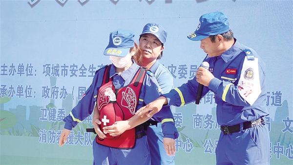 6月16日,項城市舉行“安全宣傳咨詢?nèi)铡被顒??;顒釉O(shè)置警示教育片展播、應(yīng)急技能演示、救援裝備展示、安全咨詢等環(huán)節(jié)。圖為項城應(yīng)急藍天救援隊3名隊員演示海姆立克急救法操作流程。