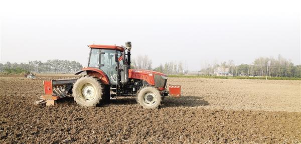 11月9日,在淮陽區(qū)高標(biāo)準(zhǔn)農(nóng)田示范區(qū),一臺(tái)東方紅拖拉機(jī)牽引著復(fù)式播種機(jī)在地里穿梭。