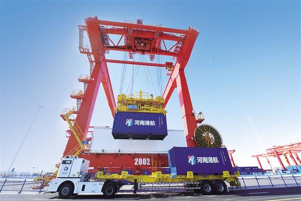 無人駕駛運輸車在進行集裝箱裝載調(diào)試。