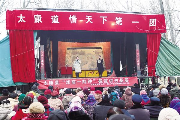去年以來,太康縣積極開展“戲前一刻鐘”微宣講進(jìn)基層活動(dòng),組織文藝工作者向廣大群眾宣傳黨的好政策、傳播黨的“好聲音”,讓黨的創(chuàng)新理論飛入千家萬戶。
