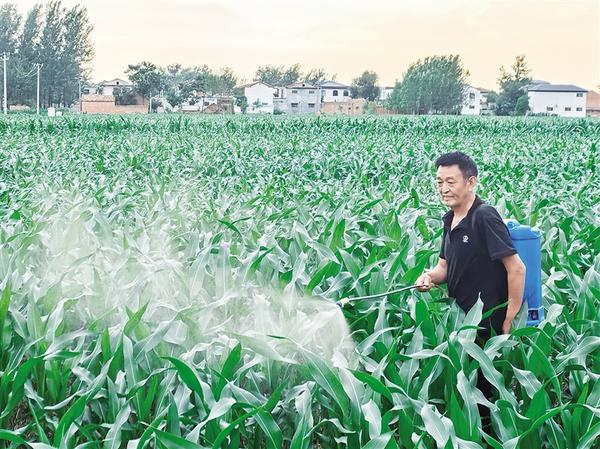連日來(lái),我市持續(xù)出現(xiàn)高溫天氣,為防治病蟲(chóng)害,確保秋糧豐收,沈丘縣積極引導(dǎo)群眾加強(qiáng)田間管理。圖為卞路口鄉(xiāng)一名群眾為玉米噴灑農(nóng)藥。