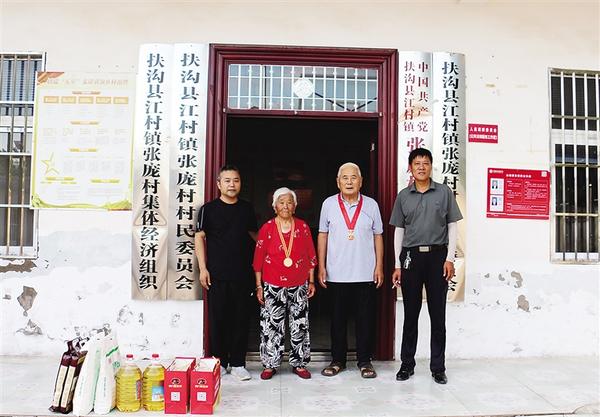 7月1日,扶溝縣委宣傳部駐江村鎮(zhèn)張龐行政村第一書記齊華中(左一)和村“兩委”干部走訪慰問該村兩位黨齡超過50年的黨員,為他們送去黨組織的關(guān)懷與溫暖。據(jù)了解,90歲的張秀真(左二),1957年入黨。76歲的劉學(xué)明(左三),1970年入黨。