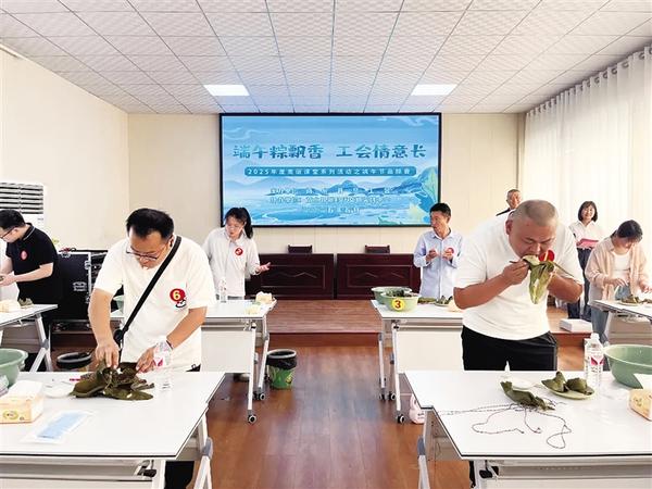 為豐富職工精神文化生活,營(yíng)造文明和諧、健康向上的氛圍,端午節(jié)前夕,商水縣總工會(huì)、縣新時(shí)代文明實(shí)踐服務(wù)中心聯(lián)合舉辦“同享端午、共品粽香”主題活動(dòng)。圖為選手進(jìn)行吃粽子比賽。