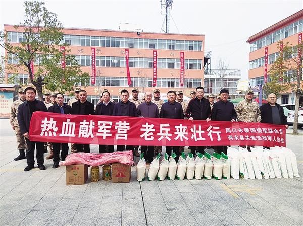 日前,周口市愛國擁軍聯(lián)合會、商水縣關(guān)愛退役軍人協(xié)會會長朱占偉一行專程到商水縣人武部訓(xùn)練基地,看望慰問正在接受役前教育訓(xùn)練的準(zhǔn)新兵??h人武部部長周昭、縣退役軍人事務(wù)局局長段文海出席活動,并對朱占偉一行表示感謝。