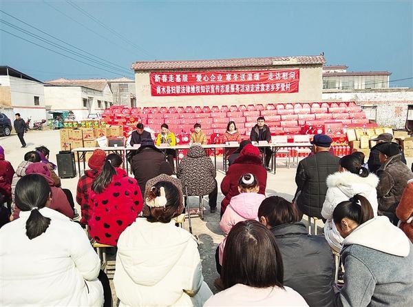 1月20日,商水縣婦聯(lián)攜手愛心企業(yè)商水縣韻達快遞有限公司到袁老鄉(xiāng)羅堂村開展走訪慰問活動,為該村教師、85歲以上老年人、困難群眾送去米、面、油、被褥等物資及新春的祝福。