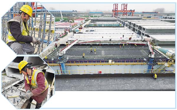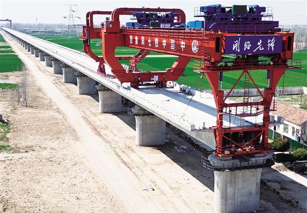 3月17日上午,中鐵七局的工人正在緊張施工。目前,平漯周高鐵項目快速推進(jìn),周口境內(nèi)商周特大橋跨河流、國道、高速等連續(xù)梁施工進(jìn)入加班加點(diǎn)搶工期階段,樁基、承臺、墩身施工接近尾聲,已鋪架箱梁90榀。