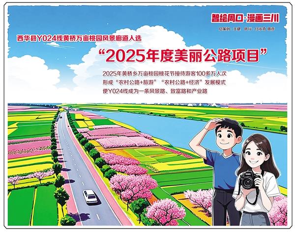 中國公路學(xué)會(huì)近日公布“2025年度美麗公路項(xiàng)目”名單,西華縣Y024線黃橋萬畝桃園風(fēng)景廊道成功入選。