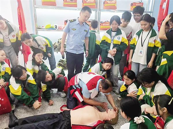 5月12日,沈丘縣風(fēng)華學(xué)校的學(xué)生觀看心肺復(fù)蘇術(shù)操作演示。當(dāng)日是第17個(gè)全國防災(zāi)減災(zāi)日,主題是“人人講安全、個(gè)個(gè)會(huì)應(yīng)急——排查身邊災(zāi)害隱患”,5月12日至5月18日為防災(zāi)減災(zāi)宣傳周。