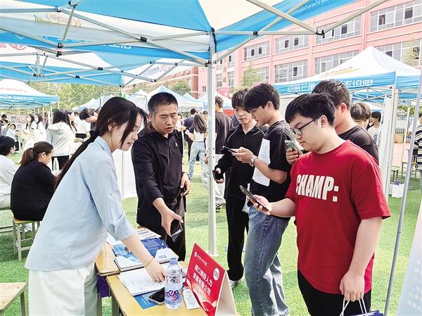 用人單位代表向求職學(xué)生介紹企業(yè)情況。5月15日,周口理工職業(yè)學(xué)院舉辦2025屆畢業(yè)生“雙選會(huì)”?;顒?dòng)中,求職學(xué)生積極與用人單位代表溝通交流、提交個(gè)人簡歷。用人單位代表耐心解答疑問,介紹公司發(fā)展前景、崗位需求及福利待遇等情況,積極招攬優(yōu)秀人才。