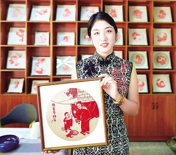 非遺剪紙代表性傳承人劉秀華展示剪紙作品。母親節(jié)前夕,劉秀華創(chuàng)作了一組以“母愛(ài)”為主題的剪紙作品,祝福天下母親節(jié)日快樂(lè)、健康長(zhǎng)壽。