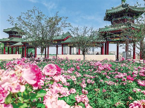 中心城區(qū)八一大道與濱河南路交叉口西側(cè)游園內(nèi)月季花盛開(kāi)。近日,在中心城區(qū)多條提升改造的道路中間及兩側(cè)的綠化帶內(nèi),“棒棒糖”月季花和地栽刺玫花如約盛開(kāi)。