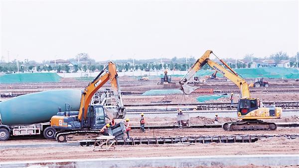 4月25日上午,在周口中心港小集作業(yè)區(qū)堆場建設(shè)工地上,工人們正緊張施工。據(jù)了解,周口中心港小集作業(yè)區(qū)將于今年年底投入運營,作為港口的重要配套工程,堆場建設(shè)正有序推進。