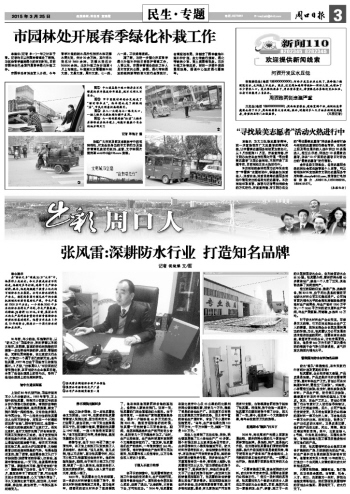 目前,張風雷領軍的企業(yè)集團正籌備擴建新的廠房、引進新的先進生產(chǎn)線,向生產(chǎn)高科技含量的新型環(huán)保卷材進軍。他誓言用未來5年或10年的努力,打造出一個由河南人主營的國內(nèi)防水材料知名品牌。