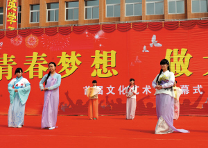 該校把特色教育作為發(fā)展的名片,推出“一班一品一特色”活動。學(xué)校建立以班級為單位的社團組織,并細分為體育類、舞蹈類、樂器類、美術(shù)類四大類別,共70個社團。比如:美工社團制作漢服進行表演,每一次都讓在場的觀眾潸然淚下,為自己是一個漢唐中華子孫而驕傲,為著漢唐服裝而自豪。學(xué)校出版了《求真大課堂》《走在成長的路上》《花季無悔》《中學(xué)生科技創(chuàng)作》《班主任德育思想錄》《國學(xué)之蘊》《家和萬事興》《共創(chuàng)一個夢 和韻文昌之家校共建》《“文昌杯”文明我先行 共筑一個夢》主題征文作文選等校本教材。為豐富校園文化生活,學(xué)校邀請中國政法大學(xué)的霍登科,歷史文化學(xué)者王少清,青少年心理教育專家張海選、萬禮彬,周口市中心醫(yī)院婦產(chǎn)科主任楊莉,河南國學(xué)院的施柳貞、王福琪、楊茹梅以及國內(nèi)外優(yōu)秀大學(xué)生對學(xué)生進行國學(xué)誦讀和教育、演講比賽、法制教育、夢想目標教育、青春期心理和生理教育等活動。在該校首屆“做大成教育 展青春夢想”文化藝術(shù)節(jié)活動中,有一項活動叫珍藏十年“心愿瓶”,當(dāng)滿載學(xué)生夢想的心愿瓶準備珍藏時,晴天出現(xiàn)了彩虹,讓在場的領(lǐng)導(dǎo)、家長、學(xué)生很驚嘆,說文昌中學(xué)的學(xué)生目標遠大,定有大才出現(xiàn)。這些有意義的活動對廣大未成年人的身心健康起到了很好的促進作用。
