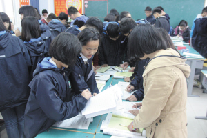 該校將課堂名字定為“求真大課堂”,以“真”字作為學(xué)校一切教育教學(xué)和管理的衡量標準。朱貴華說,求真就是要真教、真學(xué)、真嚴、真愛、真實、真會。為提高課堂教學(xué)效果,該校總結(jié)出一套獨特的課堂教學(xué)方法——“七音和鳴”。分管教學(xué)工作的副校長徐其運用“1234567”,即哆來咪發(fā)唆拉西”來詮釋“七音和鳴”法。“1”就是一個學(xué)習(xí)目標;“2”就是提前兩分鐘進班,布置2個任務(wù)(出示目標、檢查學(xué)情);“3”就是準備3個本子,即學(xué)情檢效本、跟蹤本、糾錯本;“4”是4個維度考評,即高速度、準確度、干凈度、參與度;“5”是5個跟蹤,即節(jié)跟蹤、日跟蹤、周跟蹤、月跟蹤、學(xué)期跟蹤,堅持“抓緊跟蹤不放松、我在文昌必成功”的教育信念;“6”是6個環(huán)節(jié),即激情導(dǎo)入、自研自探、合作探究、展示質(zhì)疑、師生點評、當(dāng)堂檢測;“7”是7個評價,即教師的教案、學(xué)生的學(xué)案、練案、觀課記錄的每周業(yè)務(wù)評價及對學(xué)生的即時性、激勵性、長效性評價。