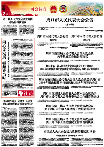 | 周口市第三屆人民代表大會(huì)第六次會(huì)議關(guān)于周口市 2014年財(cái)政預(yù)算執(zhí)行情況和2015年預(yù)算的決議 | |