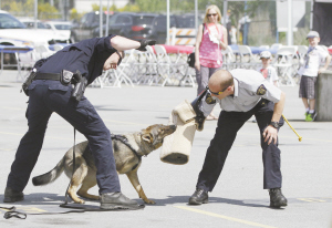 加拿大迎來全國警察周 5月9日, 在加拿大溫哥華地區(qū)的素里市,警察在警局開放日活動上向民眾示范警犬訓(xùn)練情況。為迎接一年一度的全國警察周,素里市皇家騎警總部當(dāng)日舉辦開放日活動,向民眾展示警方裝備及介紹警隊日常工作。新華社發(fā)