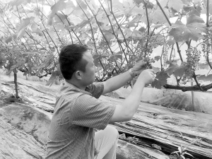 商水縣鄧城生態(tài)葡萄采摘園里,果農(nóng)忙著給掛滿果的葡萄藤疏果,把間距太近和生長稀疏以及串型不好的葡萄剪掉,留下健壯的葡萄串。目前,該采摘園100余畝玫瑰味、草莓味、菠蘿味、櫻桃味等品種的葡萄長勢喜人,豐收在望。