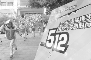 校園地震逃生演練    5月12日,安徽省合肥市蜀山區(qū)第五十中學(xué)(新區(qū))的學(xué)生們?cè)谘菥毜卣鹛由冯x。當(dāng)日是“5·12”汶川地震紀(jì)念日,該校開展逃生演練?;顒?dòng)旨在指導(dǎo)學(xué)生遇到地震時(shí)采用有序、正確的處置方法。