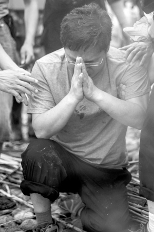 與此同時,一些遇難者家屬所在地的前方工作組,也組織遇難家屬或在賓館,或在江邊設置簡易祭臺,供遇難者家屬哀悼。