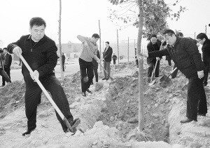 市委書記徐光等領導仔細培土。記者 王映 攝