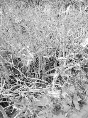記者采訪中發(fā)現(xiàn),這里的綠化帶植物成片成片地枯死,從干枯的程度上看,應(yīng)該枯死一段時間了,而這些植物的枝條上都裹著一層白色物體。