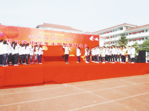 此次活動是由市文明辦、團市委、市教育局主辦。當(dāng)日上午,在優(yōu)美的樂曲中,活動正式拉開帷幕(如圖)。隨后,在少先隊退隊儀式上,學(xué)生們重溫入隊誓詞,揮手告別稚氣天真的童年,肩負(fù)起理想與責(zé)任向青春邁進(jìn)。面對如此情境,家長也頗有感觸?!昂⒆?,當(dāng)你還睡在我肚子里時,有空我就跟你說說我們之間的悄悄話。我知道,從此,我和你脈搏相連在一起……今年你14歲了,長大了,意味著你可以獨自承擔(dān)人生的風(fēng)雨……爸爸媽媽也有許多人生經(jīng)驗想與你分享交流,關(guān)于愛情、關(guān)于人生、關(guān)于事業(yè)……”。陳艷麗作為家長代表上臺,樸實的語言打動了在場的學(xué)生。